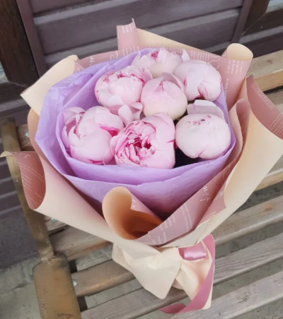 Если хочется нежности и пышности — берите моно-букет. Сейчас очень популярно купить букет пионов с доставкой в крафтовой упаковке или коробке.