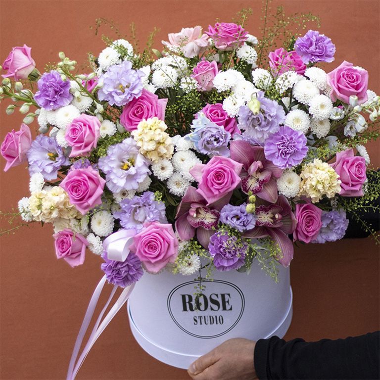 Чтобы букет в коробке приехал красивым, важна правильная логистика. В Rose Studio мы заранее подготавливаем цветы, надёжно крепим их внутри и используем защитную упаковку для перевозки.